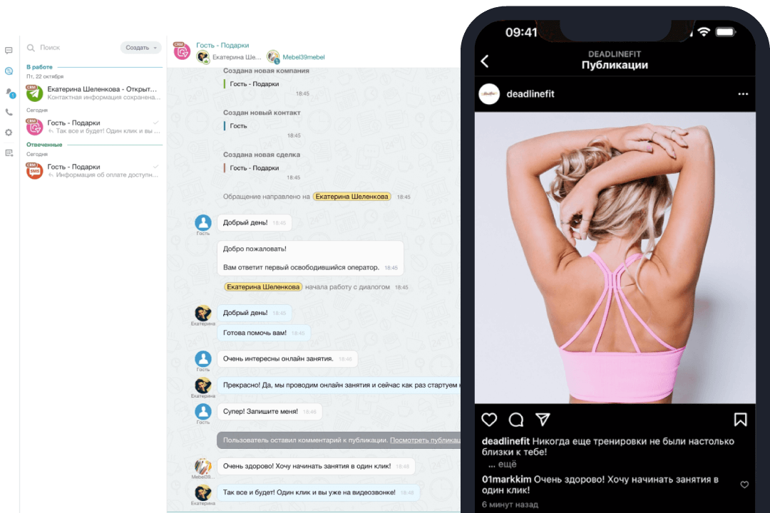 Подписчик написал комментарий в Instagram – менеджер сразу видит новый диалог в CRM.