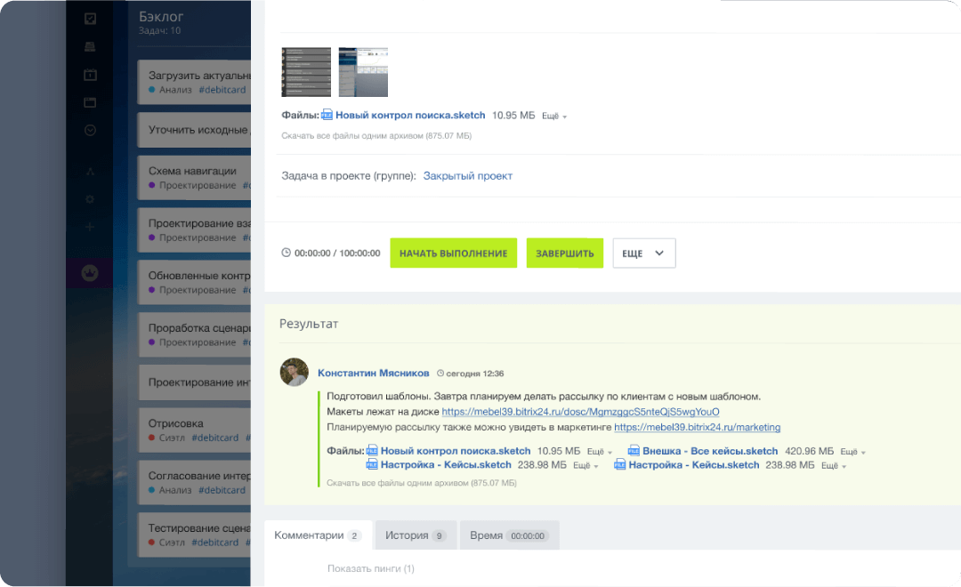Добавляйте задачи в «Бэклог» — колонку со списком всех намеченных работ по проекту. Формируйте из них короткие итерации — «Спринты».